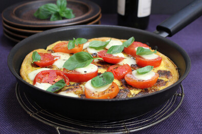 Meanwhile, preheat a grill. Place the tomatoes and bocconcini on top of the frittata. Place the pan under the grill until the tomatoes are soft and cheese slightly melted. Serves 4.