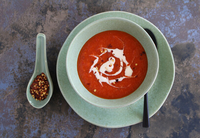 This soup is a great start to dinner or an excellent light lunch served with garlic bread. At a pinch, the fresh red capsicums could be replaced with roasted capsicums from a jar, rinsed well before use.