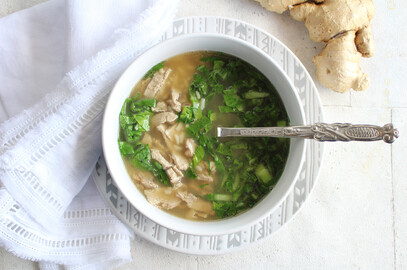 Soups need garnishes: If using fresh herbs, sauté them first until just soft — they're easier to eat; swirl a little sour cream or creme fraiche on the top of hot soups and sprinkle with freshly ground black pepper, chilli flakes or grated orange rind; and crisp roasted kale adds a little crunch and goodness.