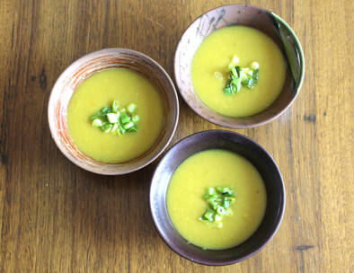 Heat 2 teaspoons of the oil in a medium-large saucepan. Gently cook half the spring onions, plus the ginger and garlic for 5 minutes or until soft. Add the miso, turmeric, honey, kumara and vegetable stock. Cover and simmer for 25-30 minutes or until the kumara is soft.