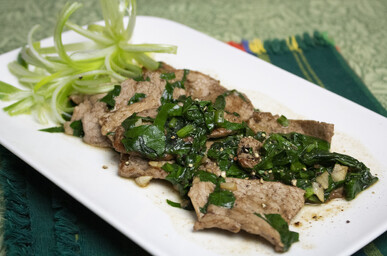 Add the spinach, water and brown sugar and stir-fry until wilted. Add the spring onions and serve. Serves 4.