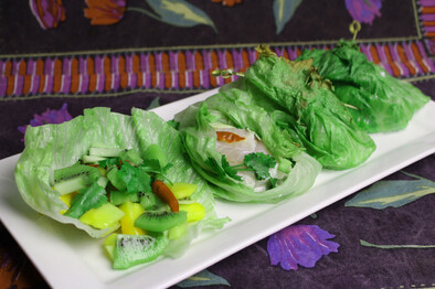 Cut the fish into serving-size portions. Place in the centre of each lettuce leaf.