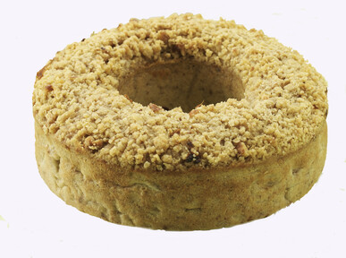 To make the cake, cream the butter and sugar until light. Add the eggs and milk and mix until smooth. Add the sifted dry ingredients. Fold in the pears and half the crumble mix. Pour into the prepared cake pan. Top with the remaining crumble mix.