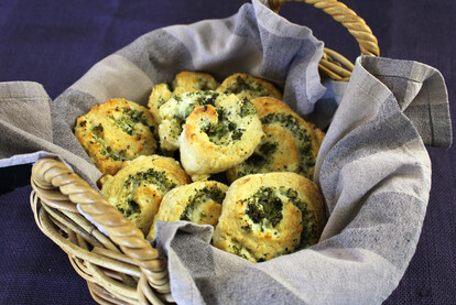 Spread with the softened cream cheese. Top evenly with the broccoli, shredded cheese and shallot. Roll up firmly from a long side. Cut into 2.5cm rounds.