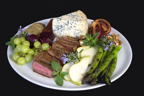Place the blue cheese on a platter together with all the other foods. Serves 6 as a starter or 2-3 as a main.