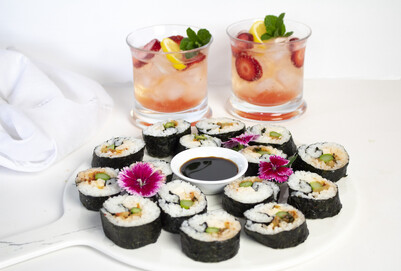 STRAWBERRY GIN FIZZ & KIMCHI SUSHI