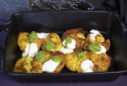 SMASHED SPUDS WITH SPICY GREEN SAUCE