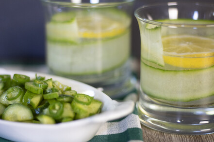 Drain the cucumbers well and add to the vinegar ensuring they are covered. Stand for at least 30 minutes. Can be stored in an airtight container in the fridge for up to 5 days. Serves 4.