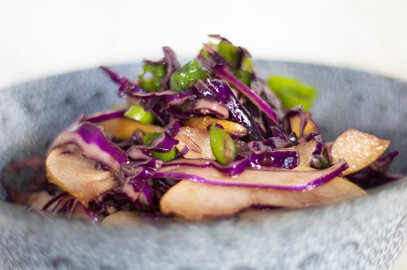Slaw: 200g trimmed red cabbage, very finely sliced