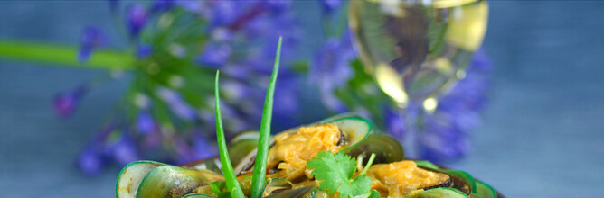 36 medium green-shell musselsSauce: 2 tablespoons each: olive oil, grated root ginger1 medium onion, diced2 cloves garlic, crushed2 makrut (kaffir) lime leavesgrated rind 1 lemon1/4 cup each: riesling, light coconut cream2 cups fish stock2 teaspoons each: curry powder, Thai ...