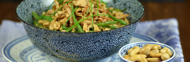 Based on chef Ken Hom's delicious recipe for Chicken Chow Mein. Because we are such a meat-eating nation I doubled the amount of chicken plus served it with cashew nuts to bring good fortune in the New Year.Noodles: 200-250g dried egg noodles1 tablespoon sesame oilMarin...