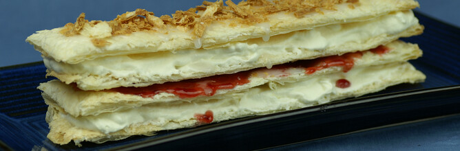 A thousand leaves — also known as Napoleon — is a quick-to-make sweet treat to serve with coffee or after dinner. It is based on a recipe from Penguin Cordon Bleu Cookery and although their recipe uses a block of puff pastry I have chosen ready-rolled pastry shee...