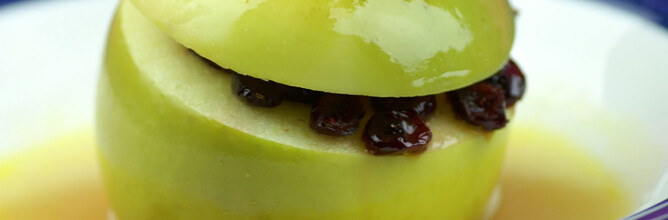 4 Granny Smith apples1/2 cup craisins1/4 cup brown sugar2 tablespoons butter, choppedjuice 1 orange4 cinnamon sticksCore the apples using a corer. Cut the top quarter off the apples.Combine the craisins, brown sugar and butter. Stuff into the centre of the apples. Place in a...