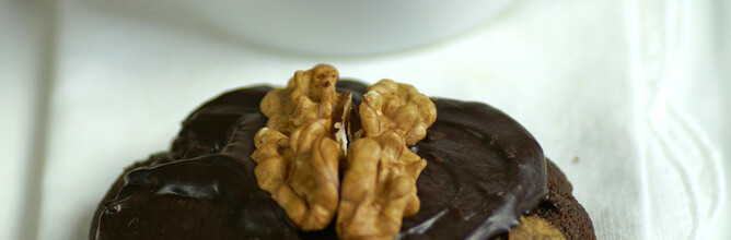 The icing on these Afghans is ganache — a mixture of dark chocolate and cream.250g butter, softened3/4 cup caster sugar1 1/2 cups flour 1/2 cup dark cocoa powder1 1/2 cups cornflakesChocolate Icing: 1/2 cup cream200g dark chocolate, finely chopped20-21 walnut halv...